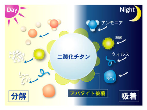 この課題を見事に解決できたのが、『アパタイト被覆酸化チタン』です。