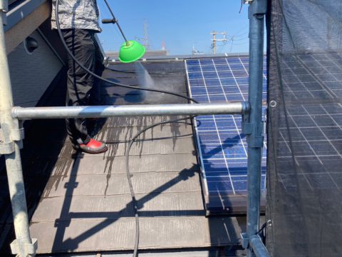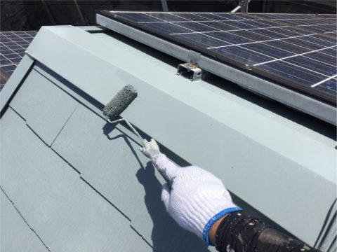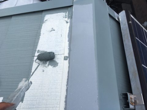 太陽光パネルがあるので塗装可能な範囲を施工します。