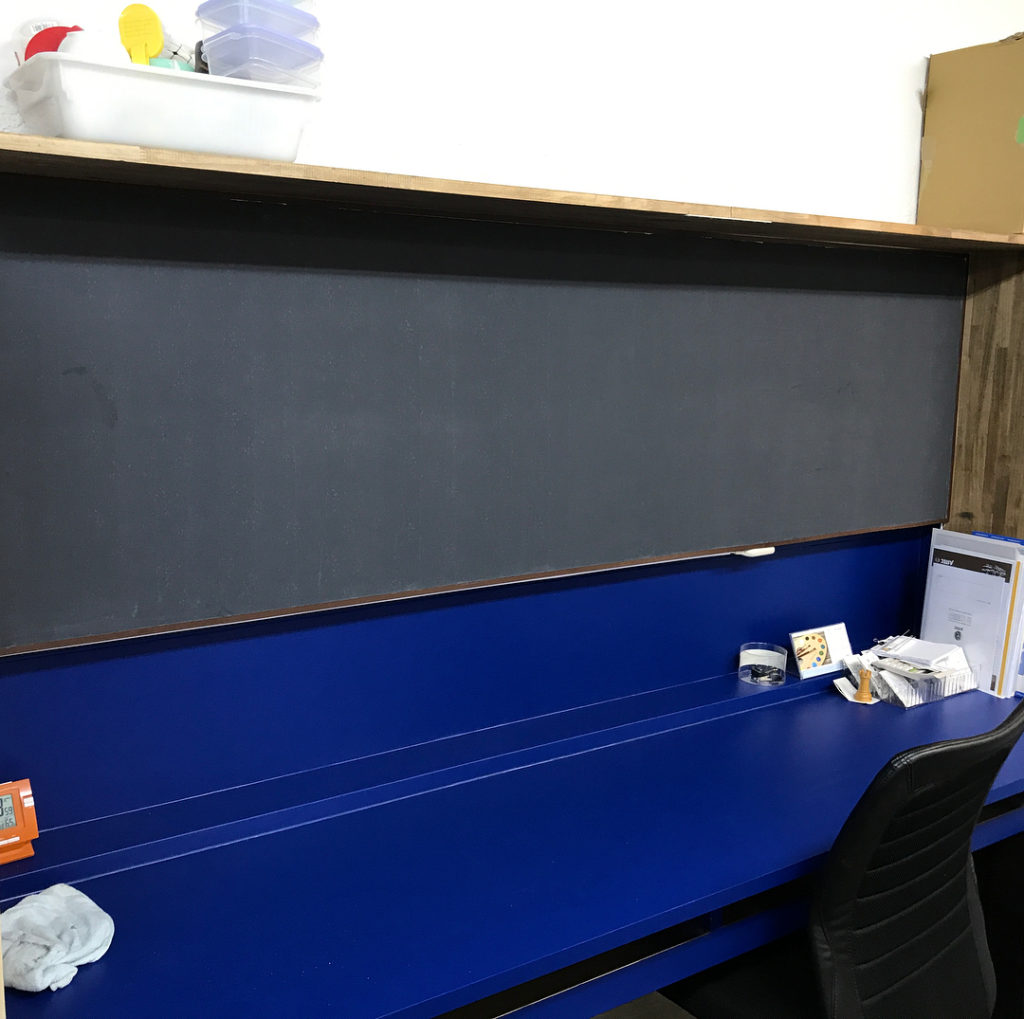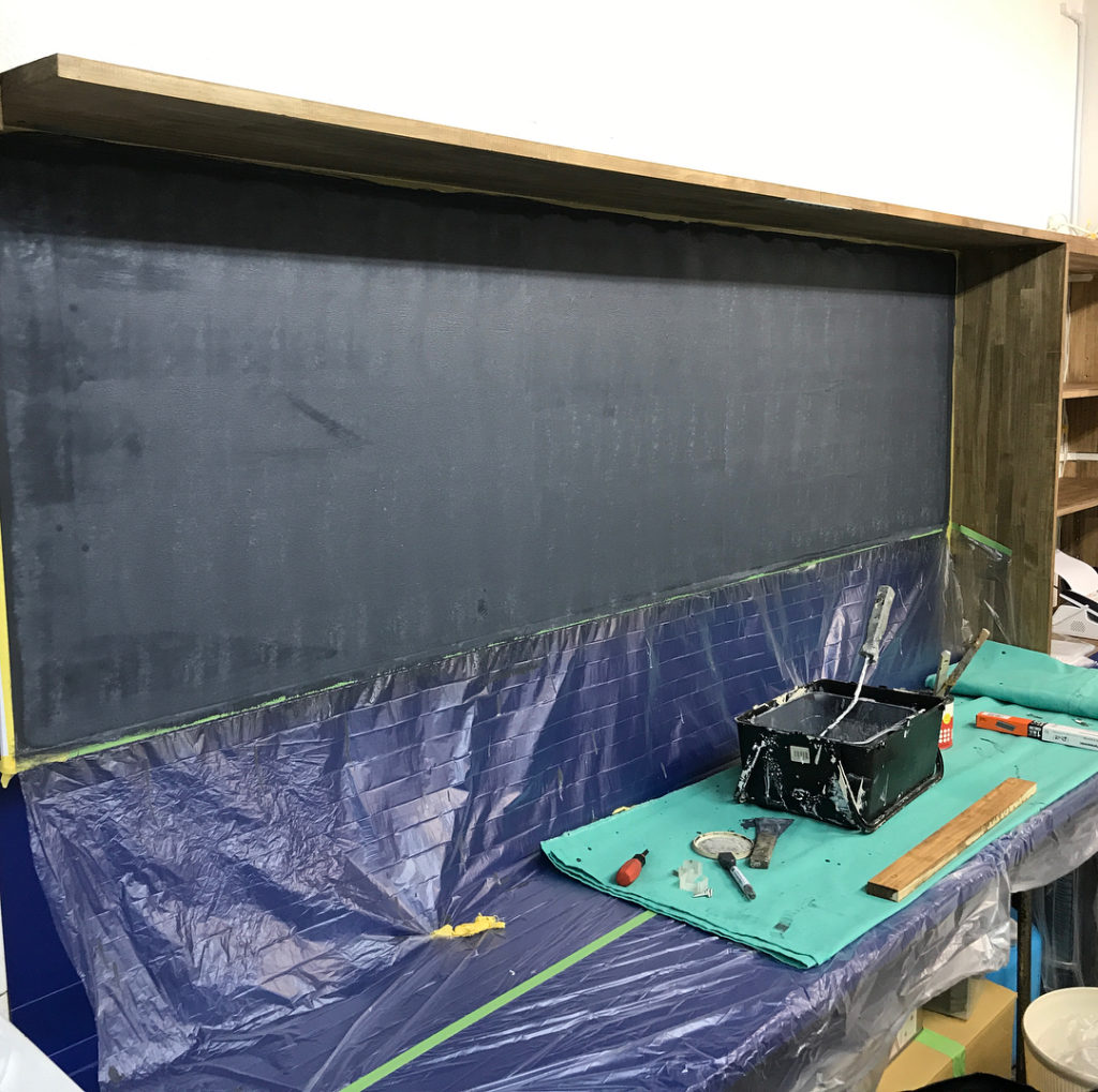 そこをボード塞ぎ、磁気塗料を塗装し、土台にはダイノックシート を貼り付けました!