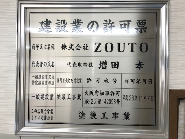塗装工事においては500万円以上の工事を行う場合はこの『建設業許可書』が必要になります。