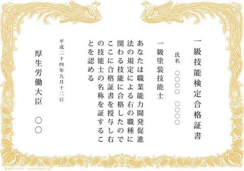 合格された方(職人さん)は下記のような賞状が授与されます。