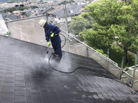 モチロン苔や藻は塗装前にしっかりと高圧洗浄で綺麗にしております。