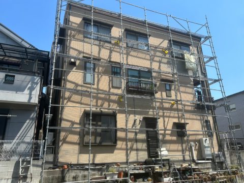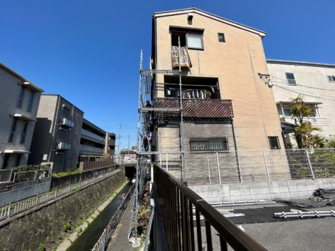 この仕事は、足場が無いと何も始まらないので、丁寧に足場を設置して頂けたら塗装やシーリングの職人さんたちもやりやすく、