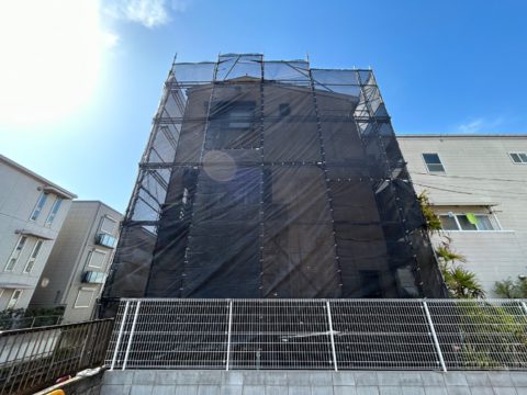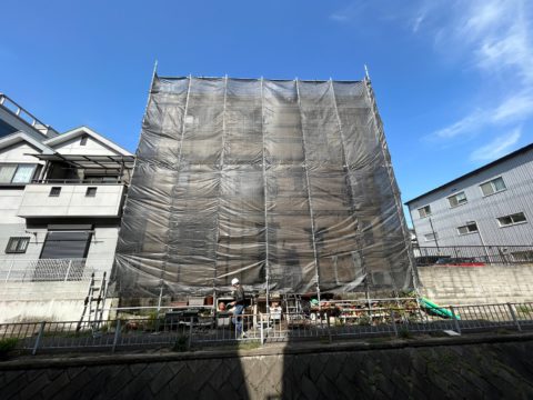 周りの環境やお隣様に気を付けながら足場を建てていきます!