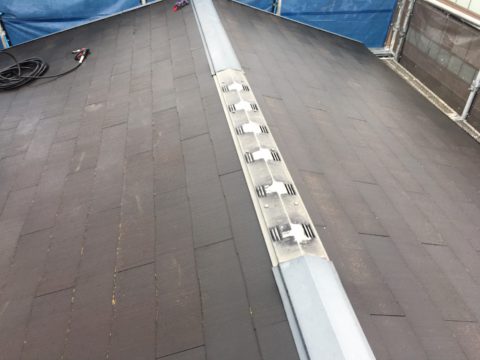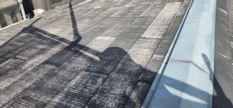 綺麗に汚れや旧塗膜などが剥がれて、元の屋根の色が見えてきていますね!