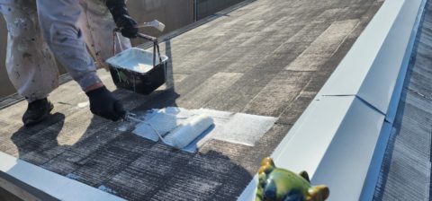 (それぞれの屋根に合う下塗り塗材を塗り、上塗り塗料をしっかり密着させます!)
