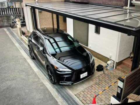 カーポート・門柱の新設工事が完了し、新車もしっかり