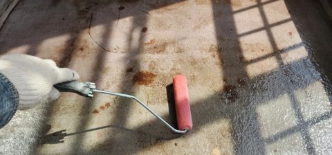 (劣化が酷い場合には、新しい防水層(ガラスマット)を敷込む必要があります。)