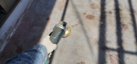 (下地を電動工具で研磨することにより下塗りの密着を向上させます!)